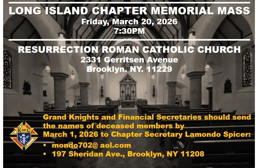 Our Lady, Queen of the Knights, bless all the activities of our Order. Keep us true to our pledge, to extend the kingship of thy divine son on earth. Through Thine intercession, win for us the grace, ever to exemplify in our public and private lives, the virtues that should characterize those especially dedicated to the service of the heavenly court. Make us always aware that as your Knights, we are constantly observed, our faith judged, and our Order appreciated. Accept, O Mary, this renewed pledge of fealty and devotion, of Thy Servants, the Knights of Columbus. |